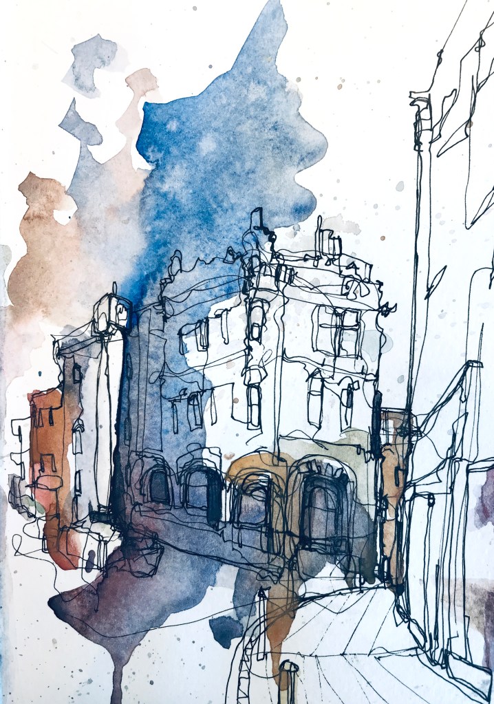 As an urban landscape artist my work is inspired by the cities and towns we live in. Whilst capturing a scene from everyday life, I always seek to bring an element of intrigue and spontaneity to deliver a more ‘artful’ representation rather than capturing a photo-realistic representation. Be it in the rapid sketching style that demands a simplification of the scene or indeed the fluid and spontaneous use of watercolours, both help to add rhythm – the essential ingredient to make it work as a piece of art.